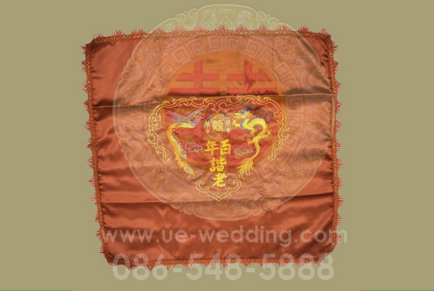 ผ้าแดงปักลายหงส์มังกรขอบแดงสำหรับวางบนพาน