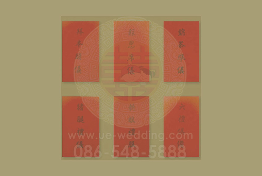 ซองพิธีตามธรรมเนียมที่ฝ่ายหญิงต้องมอบให้แก่ฝ่ายหญิงอักษรดำ ฉบับดั้งเดิมมี 6 ใบ